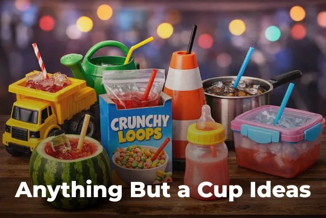 Some popular funny ideas include baby bottles for a playful look or toy dump trucks filled with drinks. You can also try watering cans, kitchen pots, or cereal boxes lined with plastic. According to Bored Panda, the funniest containers are often the most unexpected ones, which is why people even use unusual props like traffic cones or themed novelty items.