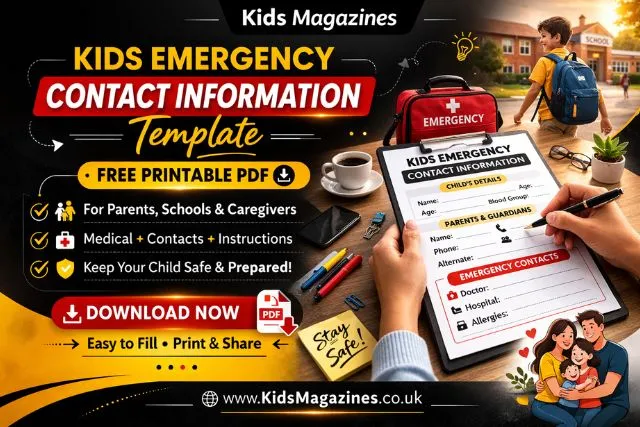 We’ve created a clean, branded, printer-friendly Kids Magazines Emergency Contact Information Template that parents, schools, and caregivers can use.